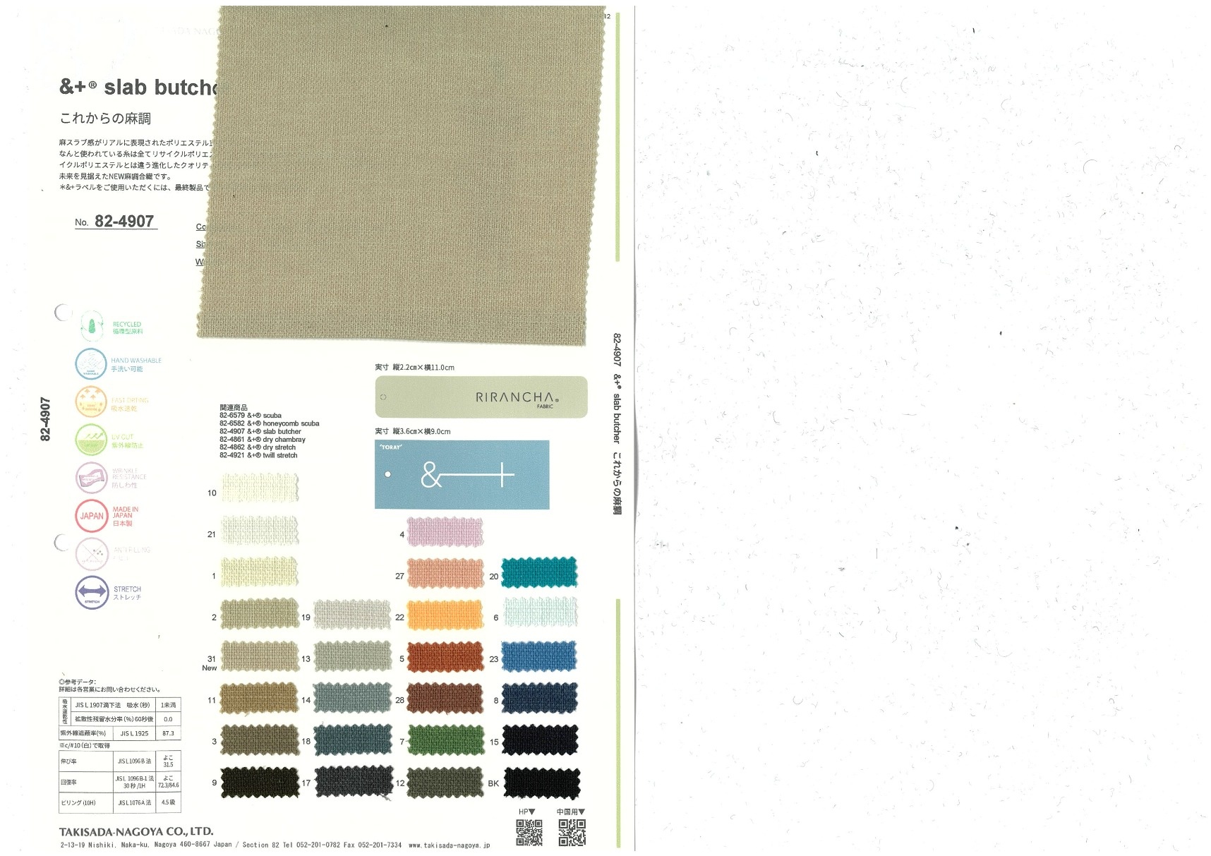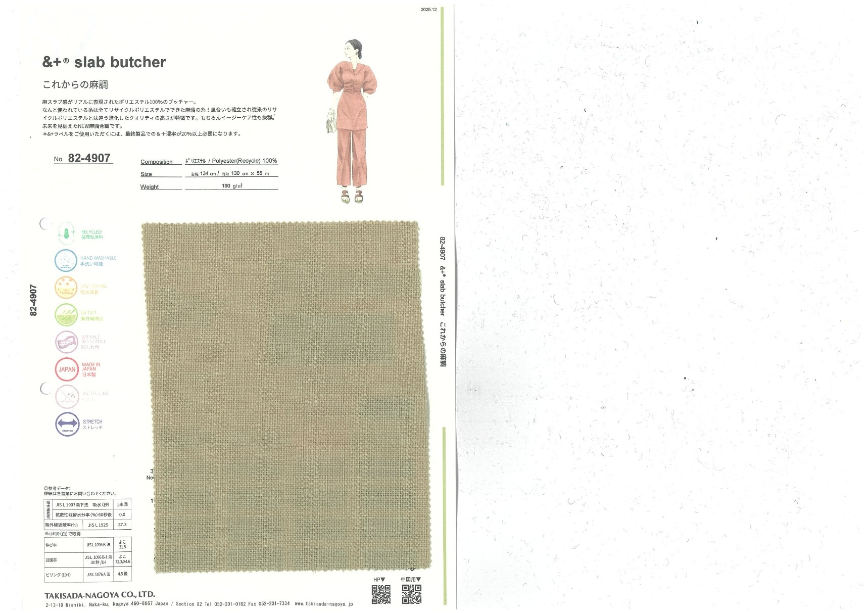 麻スラブ感がリアルに表現されたポリエステル100%のブッチャー。なんと使われている糸は全てリサイクルポリエステルでできた麻調の糸!風合いも確立され従来のリサイクルポリエステルとは違う進化したクオリティの高さが特徴です。もちろんイージーケア性も抜群。未来を見据えたNEW麻調合繊です。