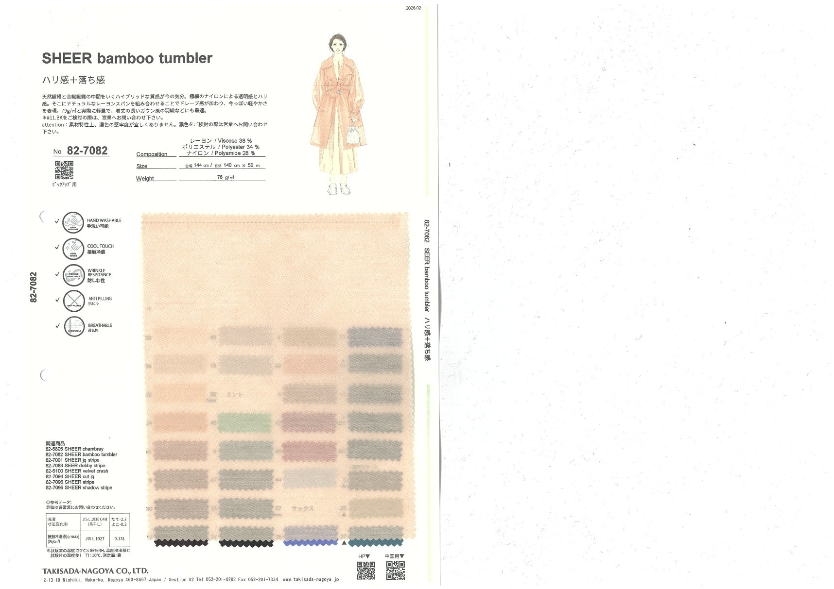 天然繊維と合繊繊維の中間をいくハイブリッドな質感が今の気分。極細のナイロンによる透明感とハリ感。そこにナチュラルなレーヨンスパンを組み合わせることでドレープ感が加わり、今っぽい軽やかさを表現。79g/㎡と実際に軽量で、着丈の長いガウン風の羽織りなどにも最適。