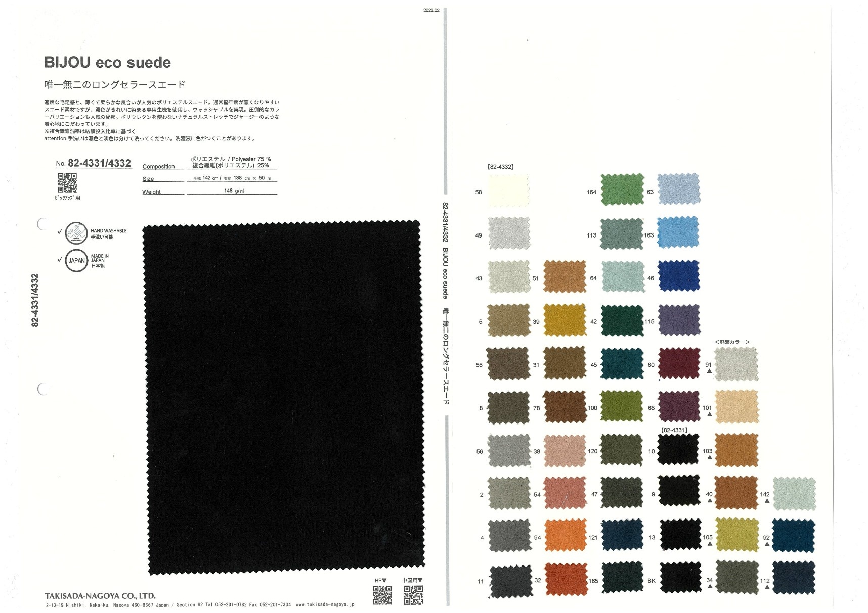 適度な毛足感と、薄くて柔らかな風合いが人気のポリエステルスエード。通常堅牢度が悪くなりやすいスエード素材ですが、濃色がきれいに染まる専用生機を使用し、ウォッシャブルを実現。圧倒的なカラーバリエーションも人気の秘密。ポリウレタンを使わないナチュラルストレッチでジャージーのような着心地にこだわっています。