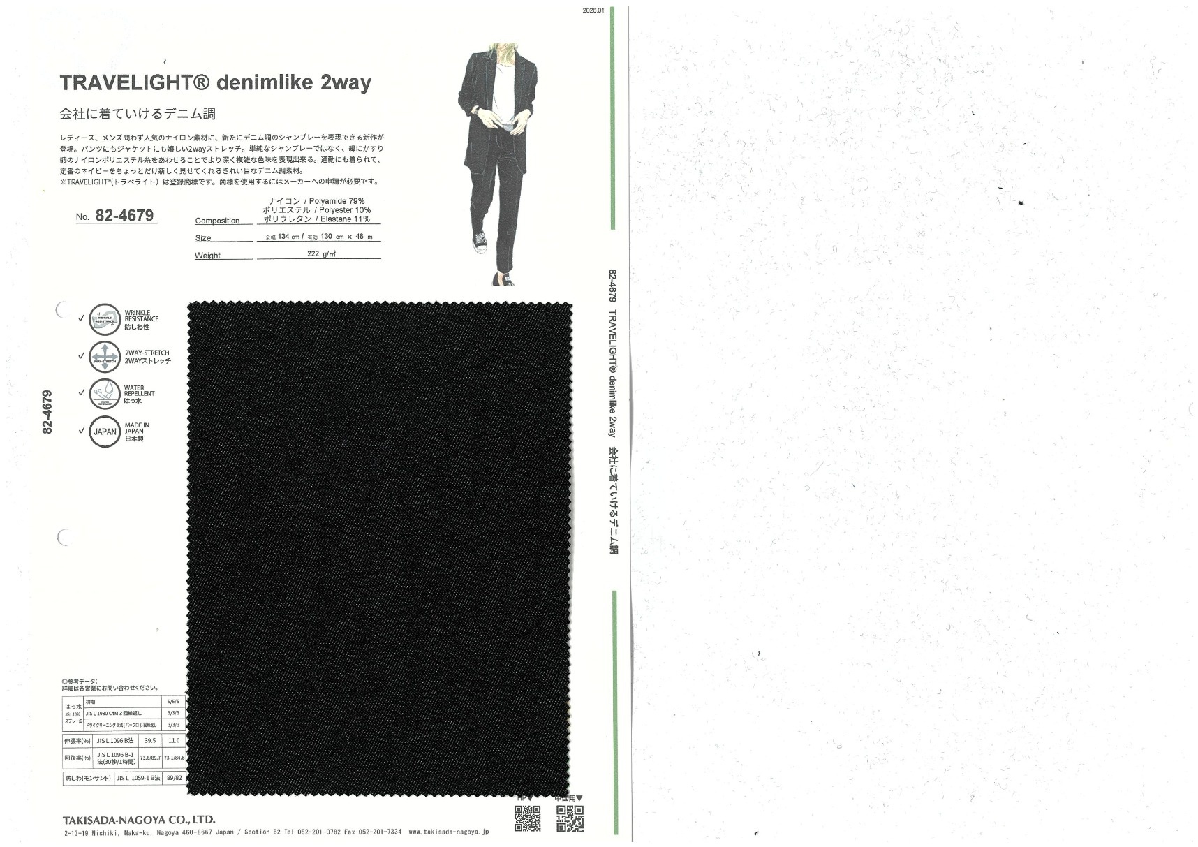 レディース、メンズ問わず人気のナイロン素材に、新たにデニム調のシャンブレーを表現できる新作が登場。パンツにもジャケットにも嬉しい2wayストレッチ。単純なシャンブレーではなく、緯にかすり調のナイロンポリエステル糸を合わせることでより深く複雑な色味を表現出来る。通勤にも着られて、定番のネイビーをちょっとだけ新しく見せてくれるきれい目なデニム調素材。