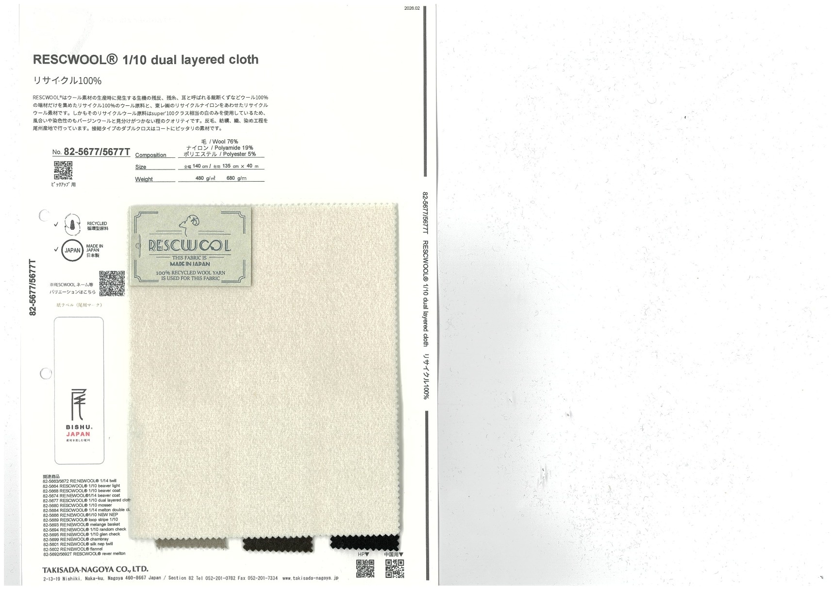 地球環境を守るサステナブルなものづくりをしていくために生まれた、リサイクルウール糸シリーズRESCWOOL®。ごく限られた国内の工場の、ウール100%の残生機や糸のみをリサイクルしたワタを使用しているため、混率にotherが出ない特別なリサイクルウール糸。そのため後染めが可能。なんとエコマークライセンスも取得済み!強度のためにブレンドするナイロンも、東レ(株)のリサイクルナイロンを採用。接結タイプのダブルクロスはコートにピッタリの素材です。