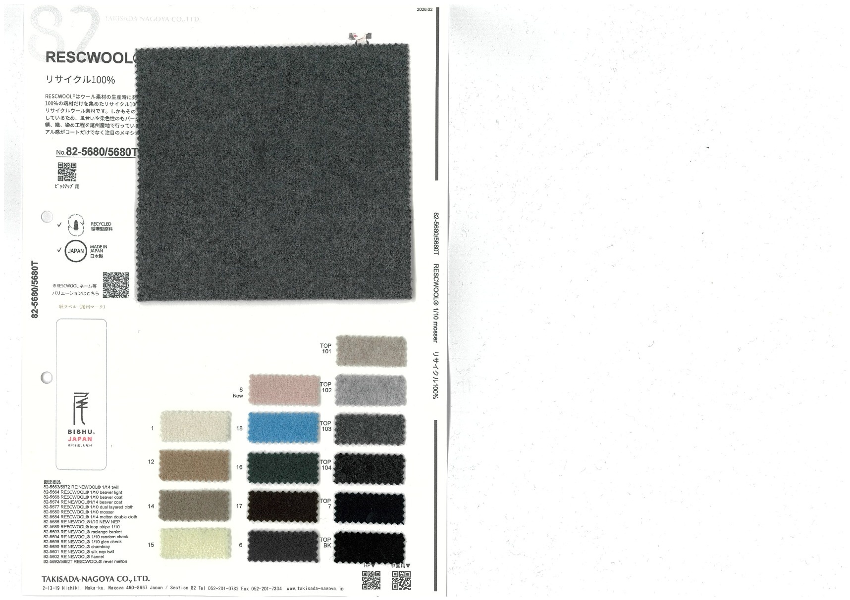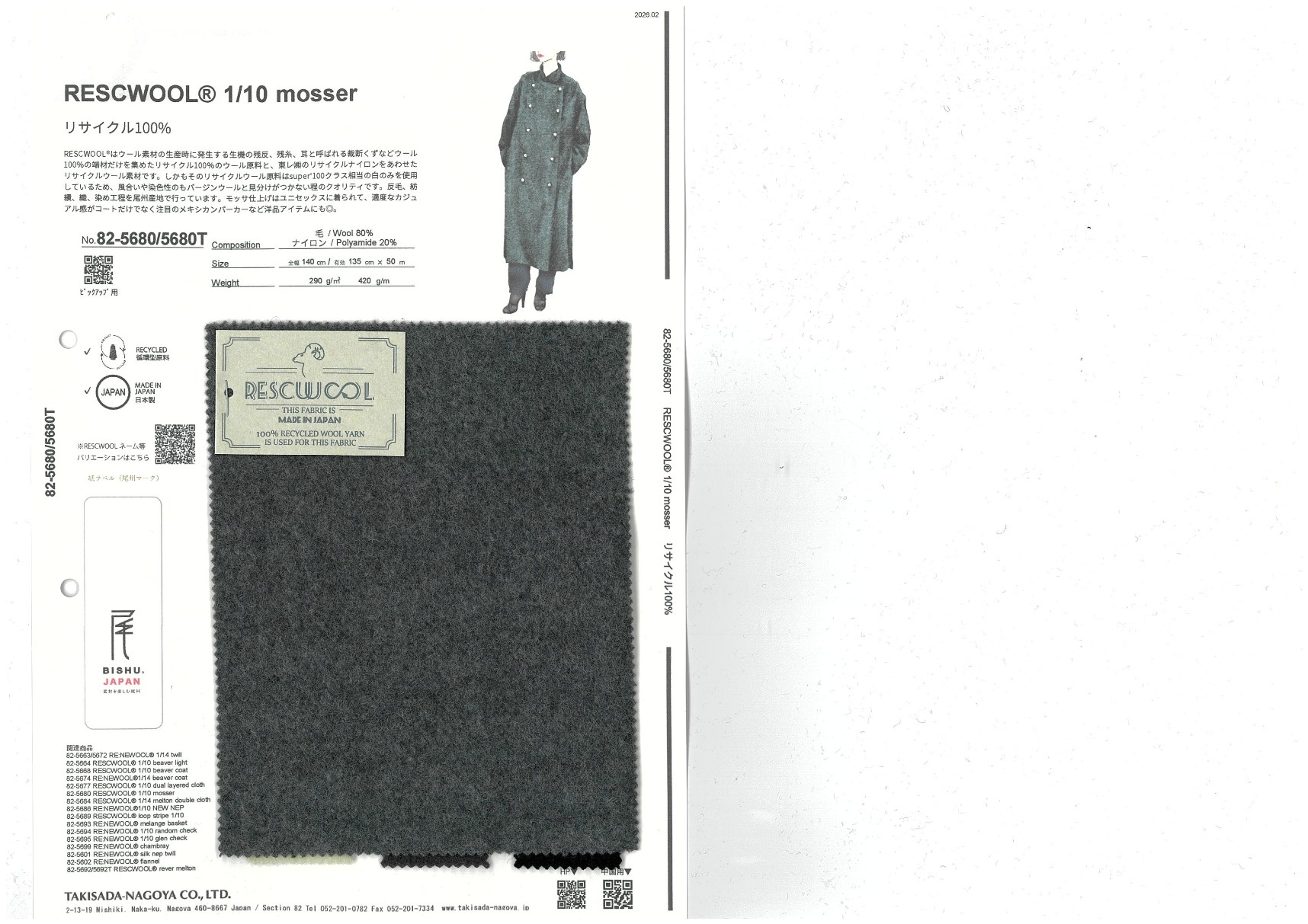 地球環境を守るサステナブルなものづくりをしていくために生まれた、リサイクルウール糸シリーズRESCWOOL®。ごく限られた国内の工場の、ウール100%の残生機や糸のみをリサイクルしたワタを使用しているため、混率にotherが出ない特別なリサイクルウール糸。そのため後染めが可能。なんとエコマークライセンスも取得済み!強度のためにブレンドするナイロンも、東レ(株)のリサイクルナイロンを採用。モッサ仕上げはユニセックスに着られて、適度なカジュアル感がコートだけでなく注目のメキシカンパーカーなど洋品アイテムにも◎。
