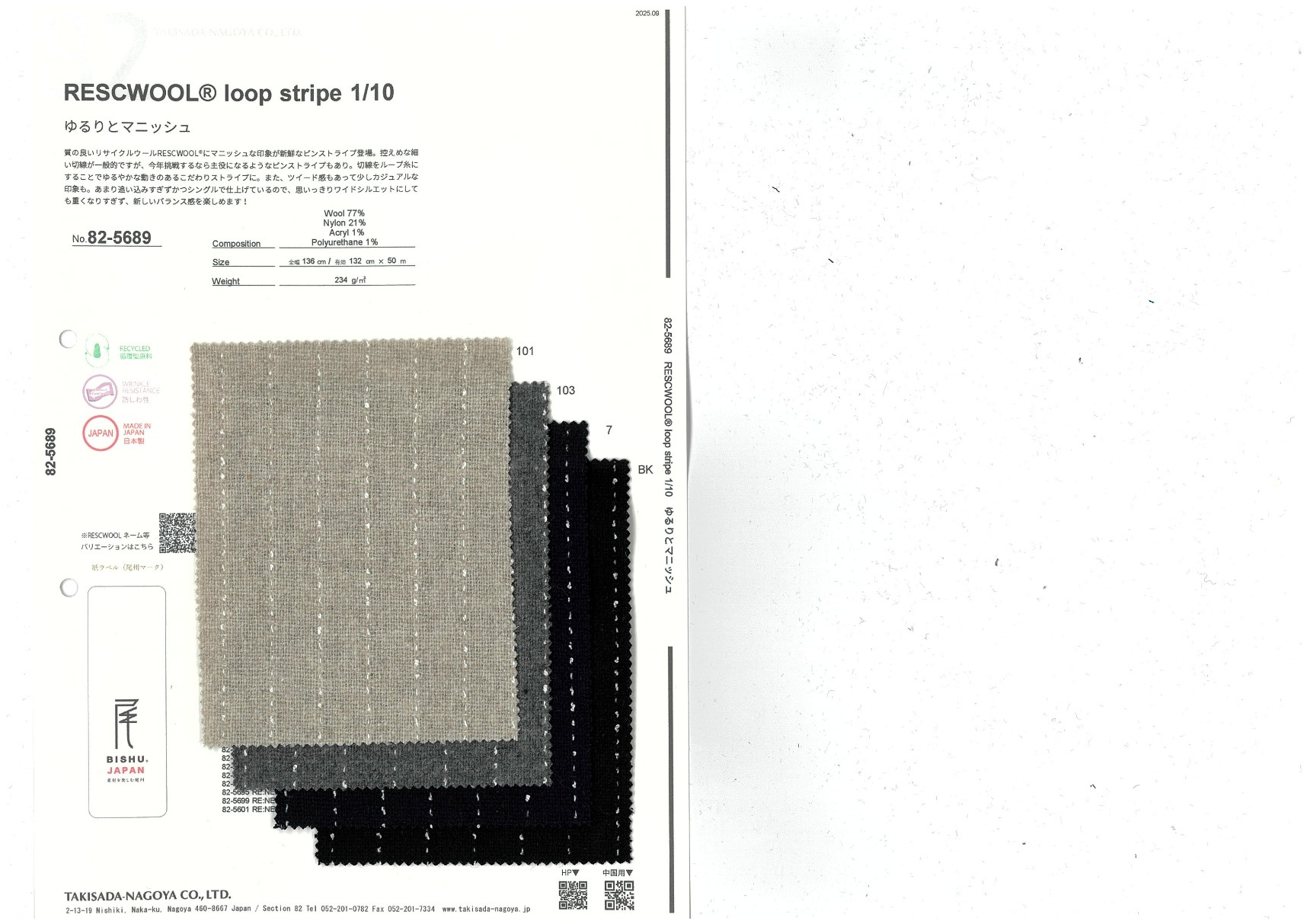 質の良いリサイクルウールRESCWOOL®にマニッシュな印象が新鮮なピンストライプ登場。控えめな細い切線が一般的ですが、今年挑戦するなら主役になるようなピンストライプもあり。切線をループ糸にすることでゆるやかな動きのあるこだわりストライプに。また、ツイード感もあって少しカジュアルな印象も。あまり追い込みすぎずかつシングルで仕上げているので、思いっきりワイドシルエットにしても重くなりすぎず、新しいバランス感を楽しめます!
